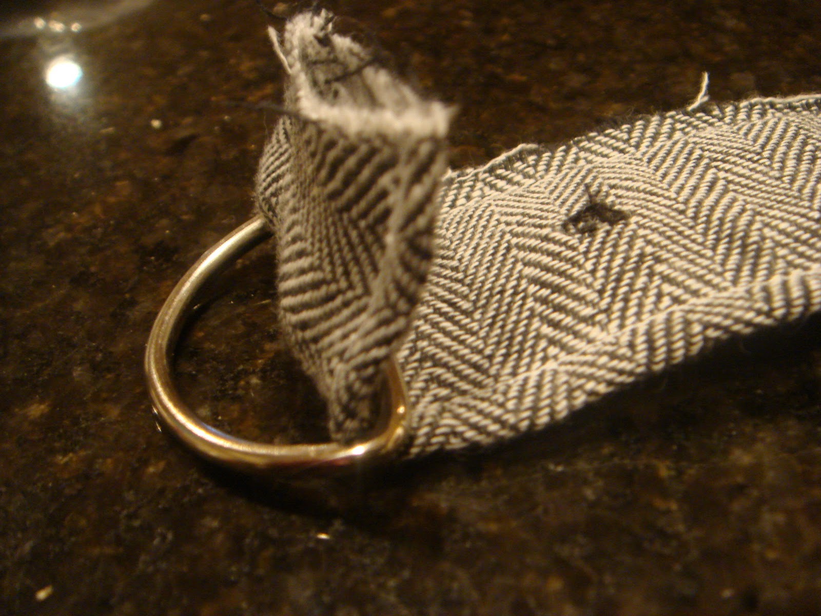 Now take a D ring and sew it on the other end of the belt: